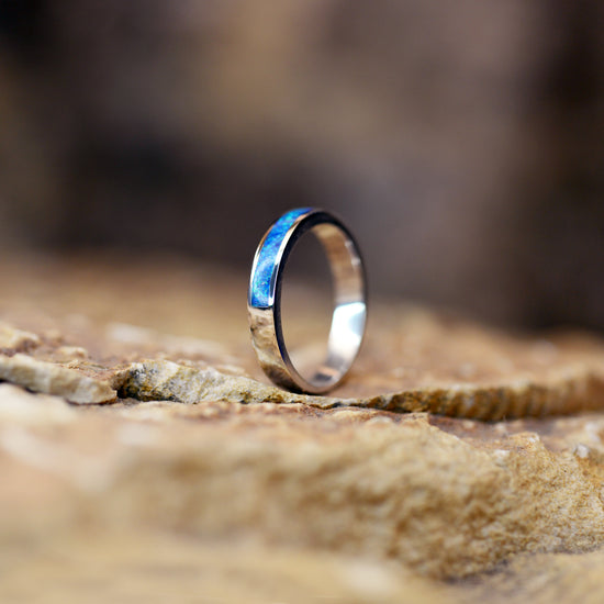 Dual SpiralCast in Sterling Silver. Filled with Pacific Blue & Pearl White Opals blended with ashes.